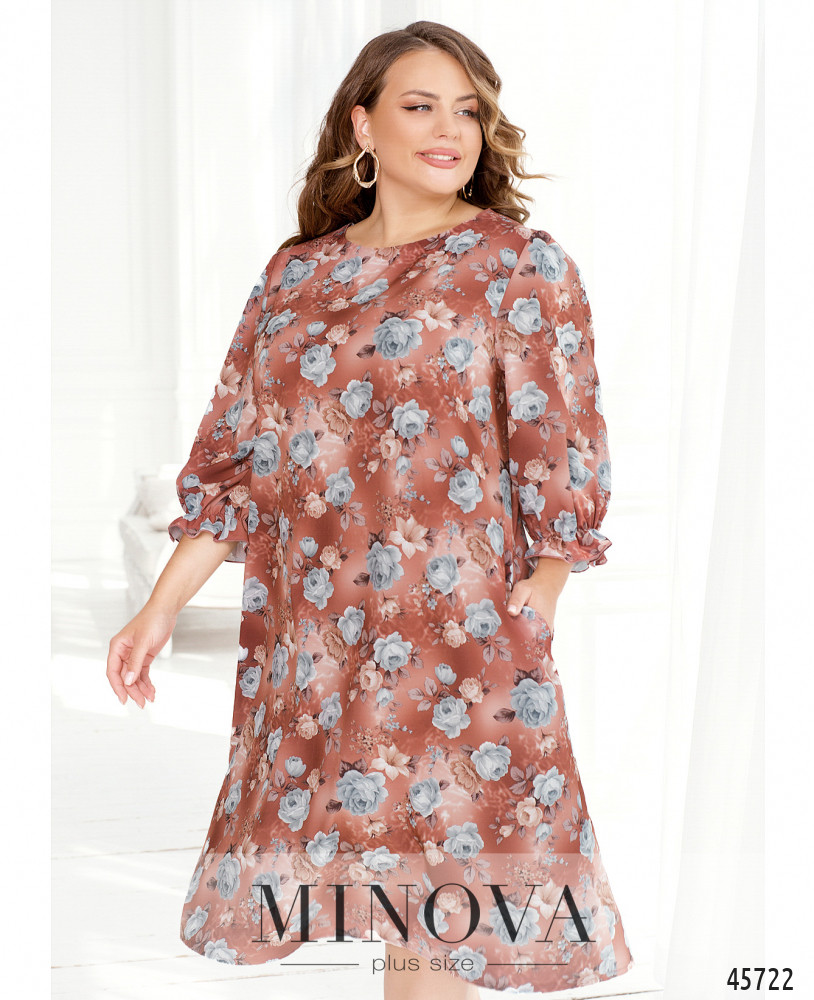 Нежное женственное платье с полукруглым вырезом горловины подойдет для прогулок и встреч с друзьями, шоппинга и вечеринки. Модель дополнена воздушными рукавами длиной 3/4 с резинкой и небольшими оборками вместо манжет, а также карманами в боковых швах.