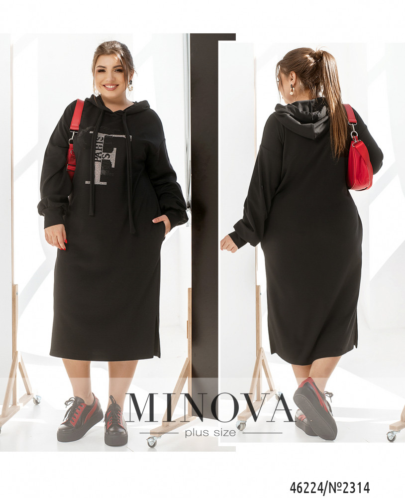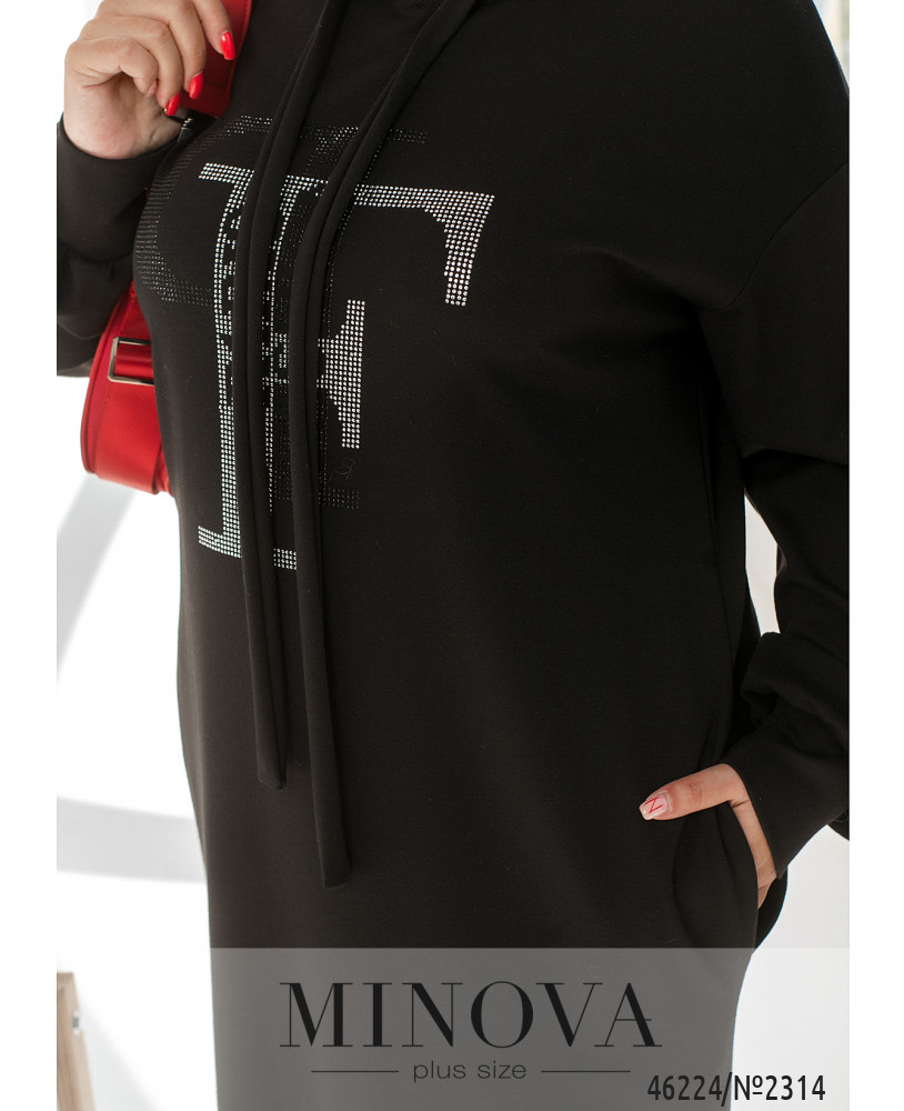 Стильное спортивное платье может стать любимой вещью для женщины, ценящей практичность и не забывающей о модных тенденциях. Модель дополнена длинными рукавами с манжетами и приспущенной линией плеч, а также карманами в боковых швах и капюшоном. Платье украшает декоративная аппликация спереди.