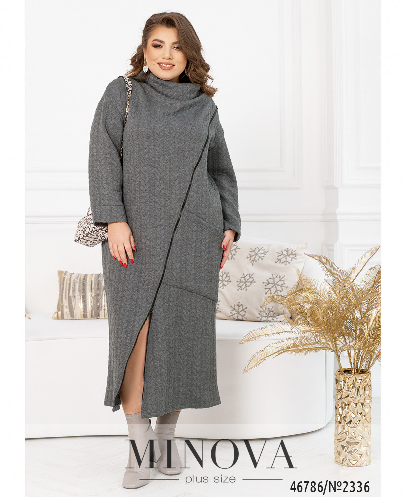 Теплое платье-миди, выполненное из мягкой структурной ткани, отличается универсальностью, а также удачно вписываются в любой стиль. Модель с высоким цельнокроеным воротником дополнена длинными рукавами с приспущенной линией плеч и большим накладным карманом спереди. Платье застегивается на змейку, вшитую спереди по диагонали.