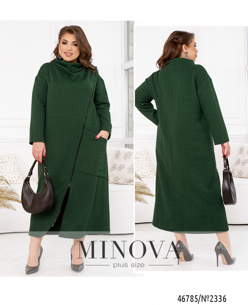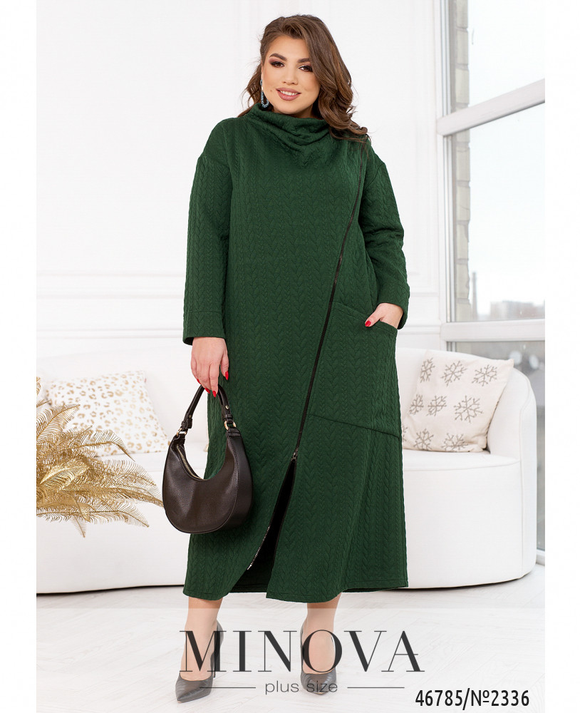 Теплое платье-миди, выполненное из мягкой структурной ткани, отличается универсальностью, а также удачно вписываются в любой стиль. Модель с высоким цельнокроеным воротником дополнена длинными рукавами с приспущенной линией плеч и большим накладным карманом спереди. Платье застегивается на змейку, вшитую спереди по диагонали.