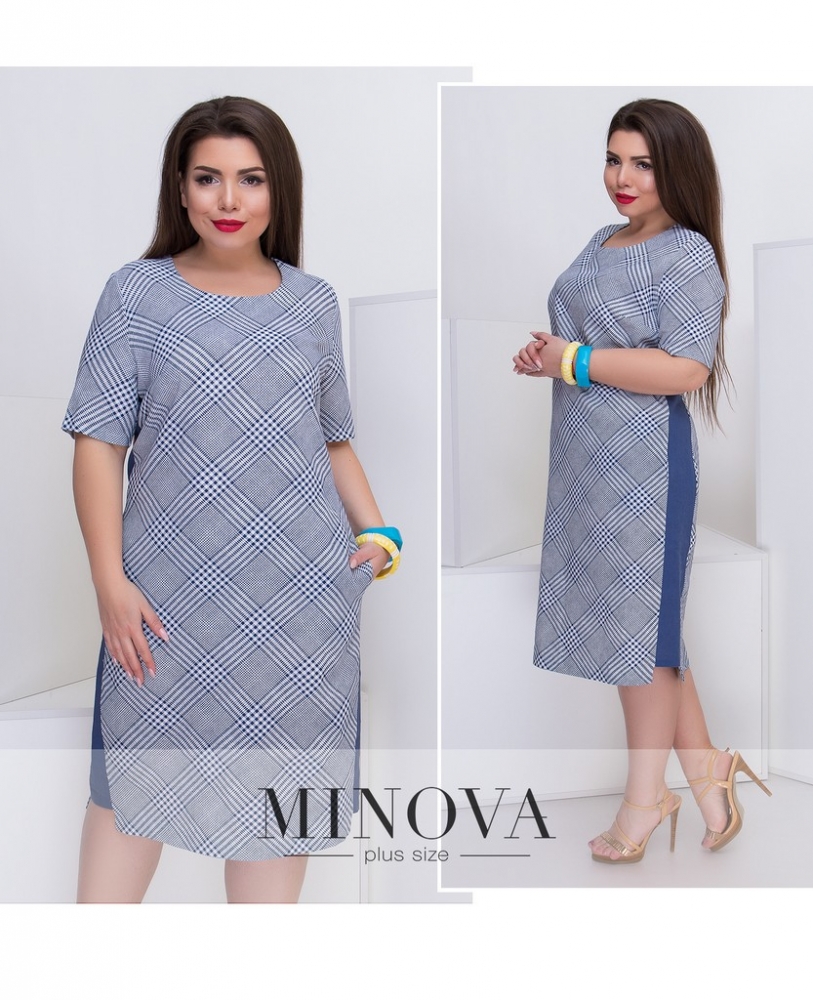 Лаконичное льняное платье прямого кроя с короткими рукавами боковыми цветными вставками. На спине есть выточки и разрез по линии шага.
