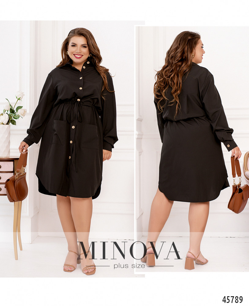 Минималистичное однотонное платье-рубашка с длинными рукавами - идеальное решение для жаркого летнего дня. Модель с воротником и пуговицами на планке спереди дополнена накладными карманами на бедрах и декоративным шнурком, вшитым в талию, который дает возможность подчеркнуть талию.