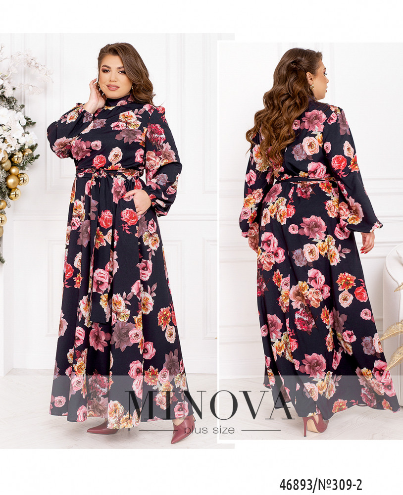 46 р-р: длина платья 147см, длина рукава от горловины 75см, длина рукава от плечевого шва 66см, обхват рукава 41см, ОГ - 102см, ОТ -96см.