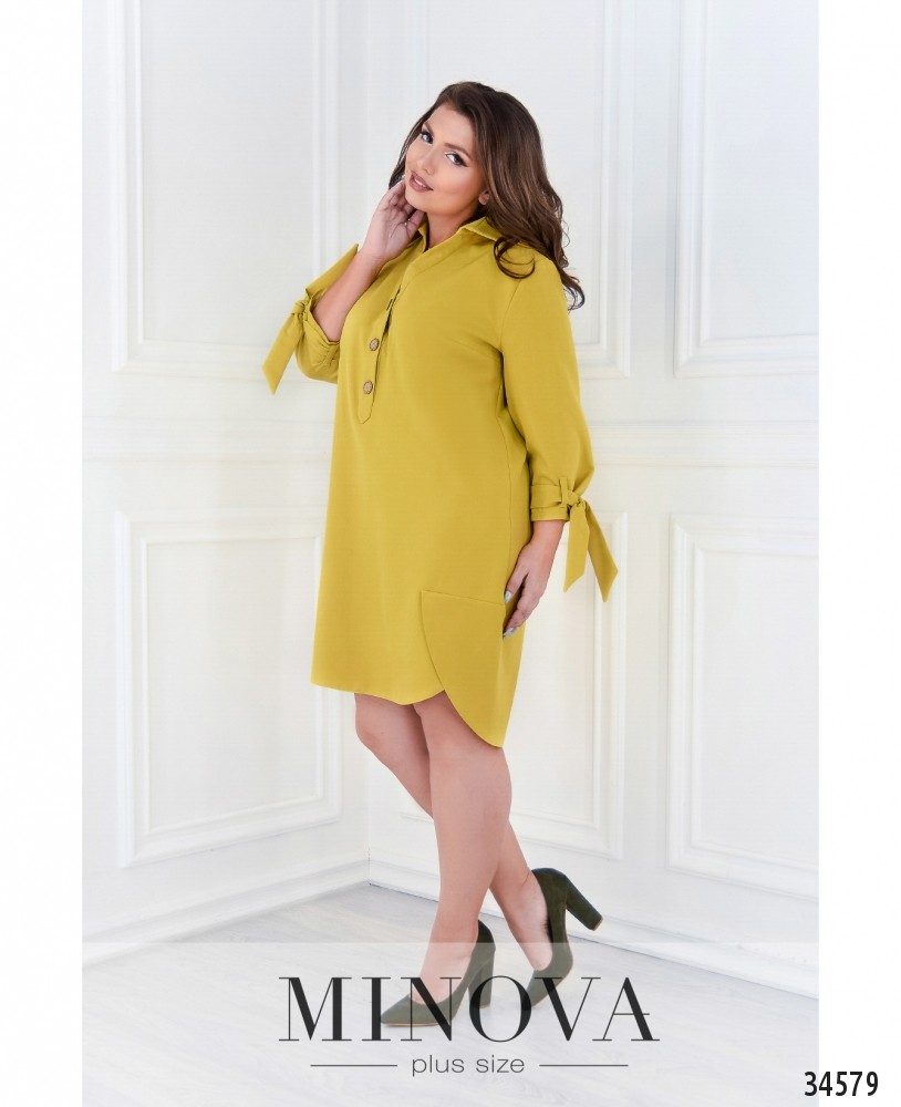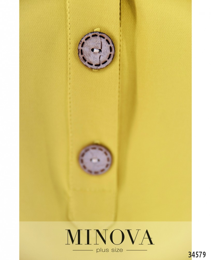 Оригинальный крой – залог создания привлекательного наряда! В представленной в новом каталоге Minova модели платья батал сразу несколько интересных элементов. Во-первых, необычный подол, подшитый по бокам на запАх в виде небольших накладок. По спине чуть длиннее, спереди – короче. Платье А-силуэта, напоминает длинную рубашку благодаря отложному воротничку и ряду симпатичных круглых пуговиц, от воротника до груди. На груди – поперечные вытачки. Рукава длиной ¾, на манжетах пропущен поясок, как на тренчкоте, его можно завязать бантом. Карманов нет. Ткань очень лёгкая. Можно выбрать тёмные или пастельные оттенки, и разнообразить свой look необычными аксессуарами.
