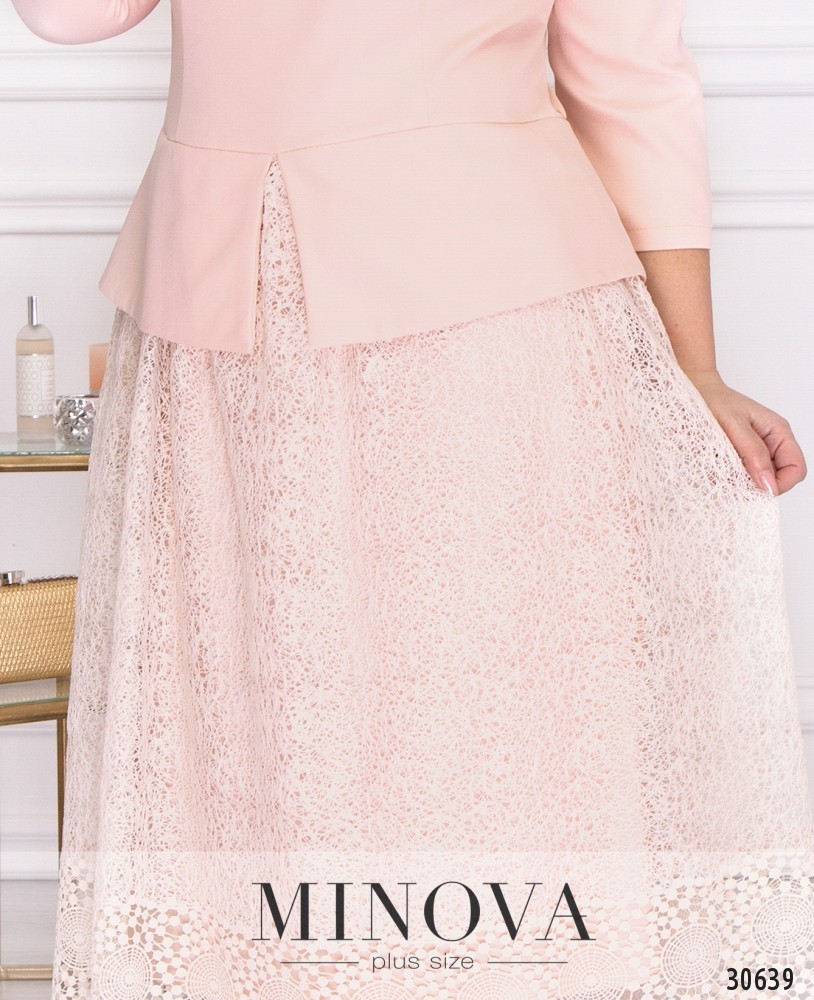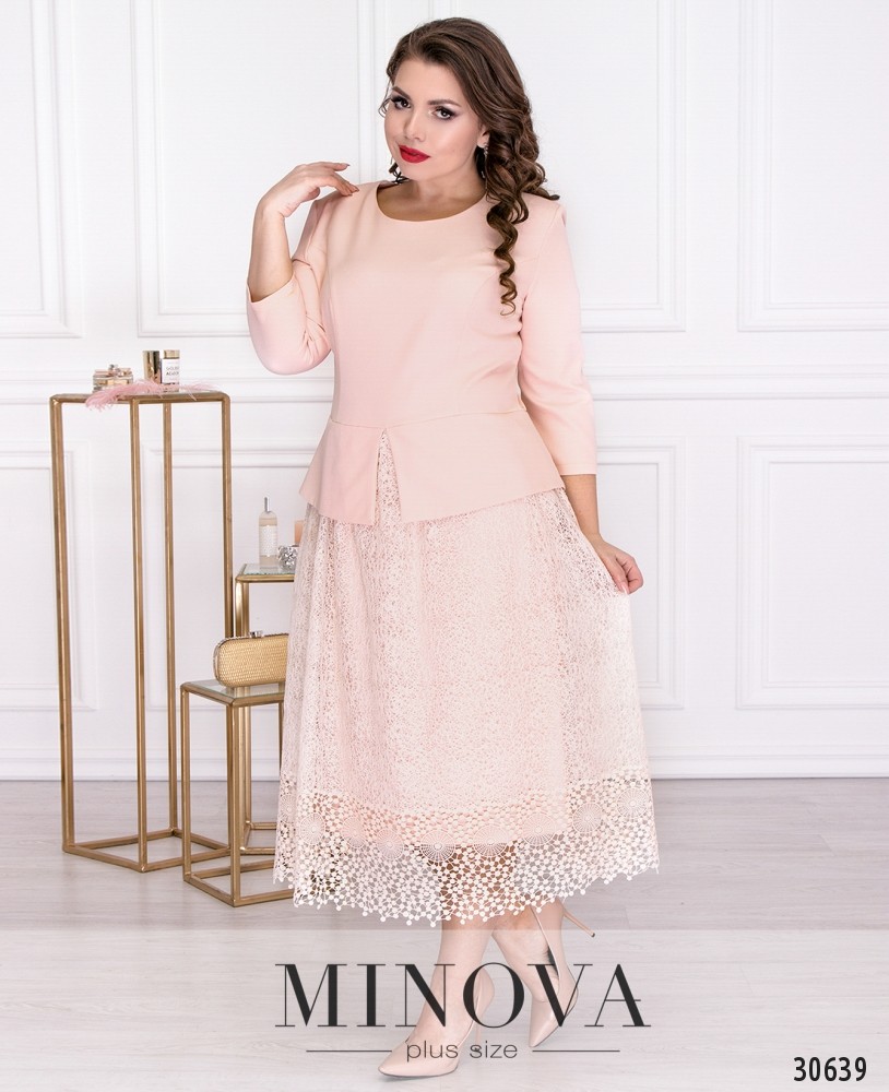 Элегантное платье с пышной фактурной юбкой. Отрезной лиф платье с вытачками и баской. На лицевой стороне баска дополнена разрезом. Пышный подол из сетки выполнен с подкладкой. На спине платье застегивается на скрытую молнию.