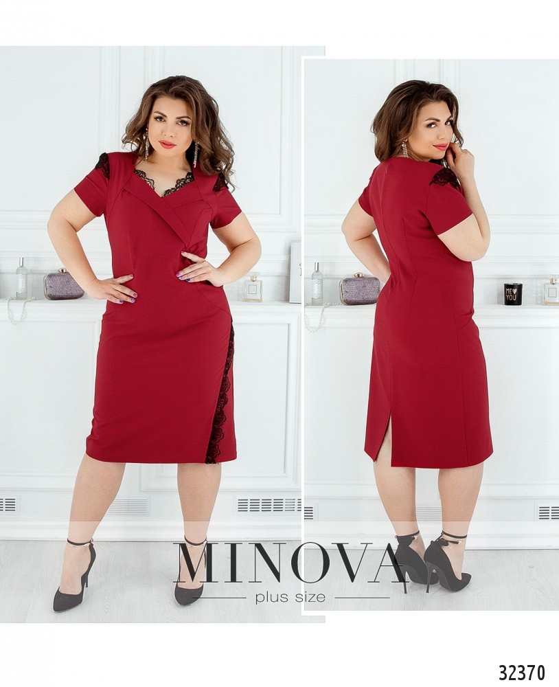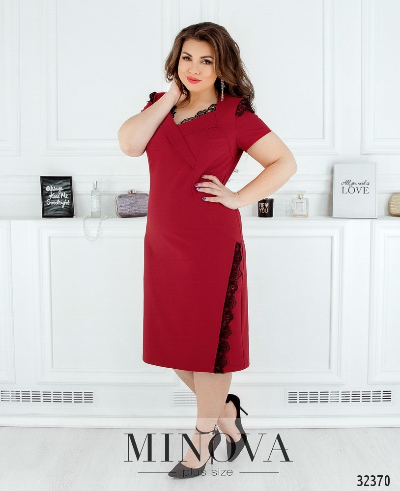 Классика удивительно сочетается с женственностью в этом платье большого размера от Minova. Всё благодаря прямому крою, кружевным вставком на рукавах, по подолу и на декольте с запАхом. Ткань лёгкая, не просвечивает и не тянется, приятна к телу и быстро сохнет. По спине – вшитая змейка до талии. Чёрный, красный и розовый цвета позволят создать образ для любой обстановки: деловой или романтической. Особенно удачно это платье батал будет смотреться на девушках с фигурой «песочные часы» или «груша»: аккуратный вырез привлекает внимание к верхней части, создавая гармонию образа.