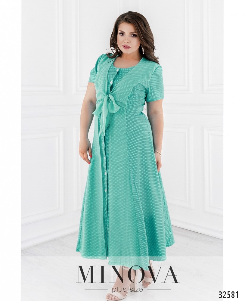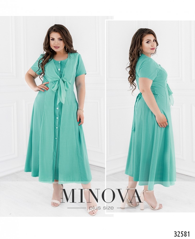 Яркое, летнее, такое свободное платье с запАхом в мелкий горох – из новой летней коллекции платьев большого размера от Minova. Кроме запАха, застёгивается на пуговицы до низу, сзади на талии тоже есть завязки, с помощью которых можно регулировать очертания талии. Платье А-силуэта, очень расклешено к низу, ткань отлично тянется и «дышит». Такой броский наряд можно надеть и на прогулку, и на пляж, и даже в офис – когда начальство в отпуске! Благодаря регулировке пояса и завязок, будет выгодно смотреться на девушках с фигурой «песочные часы», «треугольник» и «прямоугольник».