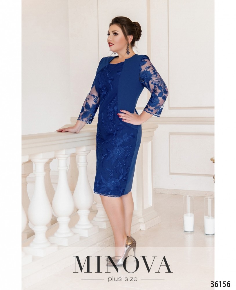 Приталенное платье батал из свежей коллекции женской одежды больших размеров от Minova покорит ваше сердце с первого взгляда своим оригинальным фасоном. Платье А-силуэта, с полукруглым вырезом горловины, без карманов и застёжек. На плечи изнутри подшиты накладки, которые делают линию плеч более ровной. Платье двуслойное спереди: от горловины до подола подшит второй слой из сеточки с цветочным узором. Визуально платье выглядит, словно на него накинута жилетка из гладкой ткани. Спинка полностью гладкая. Рукава длиной ¾. Платье будет хорошо сочетаться с однотонной обувью на каблуке любой высоты.