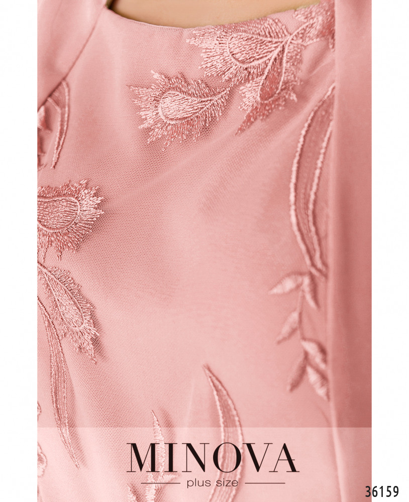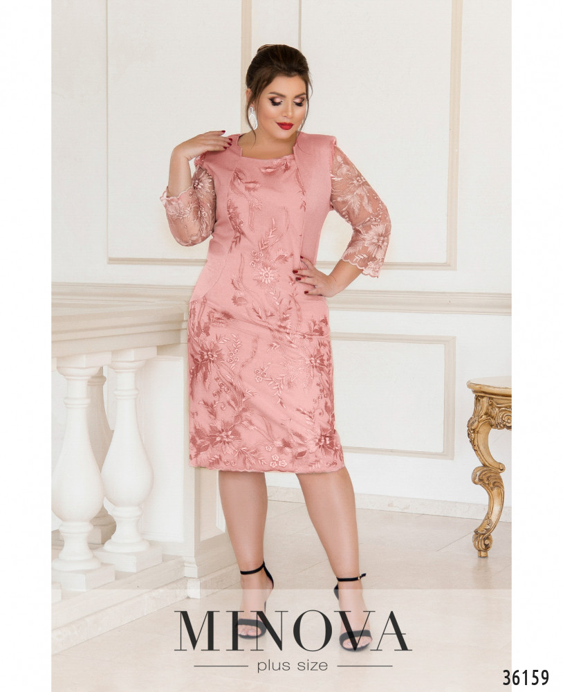 Приталенное платье батал из свежей коллекции женской одежды больших размеров от Minova покорит ваше сердце с первого взгляда своим оригинальным фасоном. Платье А-силуэта, с полукруглым вырезом горловины, без карманов и застёжек. На плечи изнутри подшиты накладки, которые делают линию плеч более ровной. Платье двуслойное спереди: от горловины до подола подшит второй слой из сеточки с цветочным узором. Визуально платье выглядит, словно на него накинута жилетка из гладкой ткани. Спинка полностью гладкая. Рукава длиной ¾. Платье будет хорошо сочетаться с однотонной обувью на каблуке любой высоты.