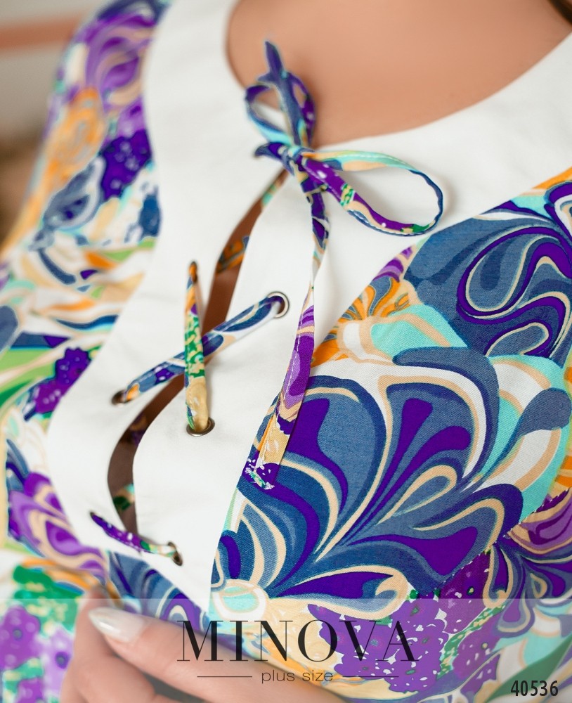 Нарядное оригинальное платье батал со шнуровкой на груди, силуэт приталенный, застёжек нет, в комплекте тонкий поясок. По бокам - врезные карманы, на подоле по бокам - небольшие разрезы. Рукава без манжет.