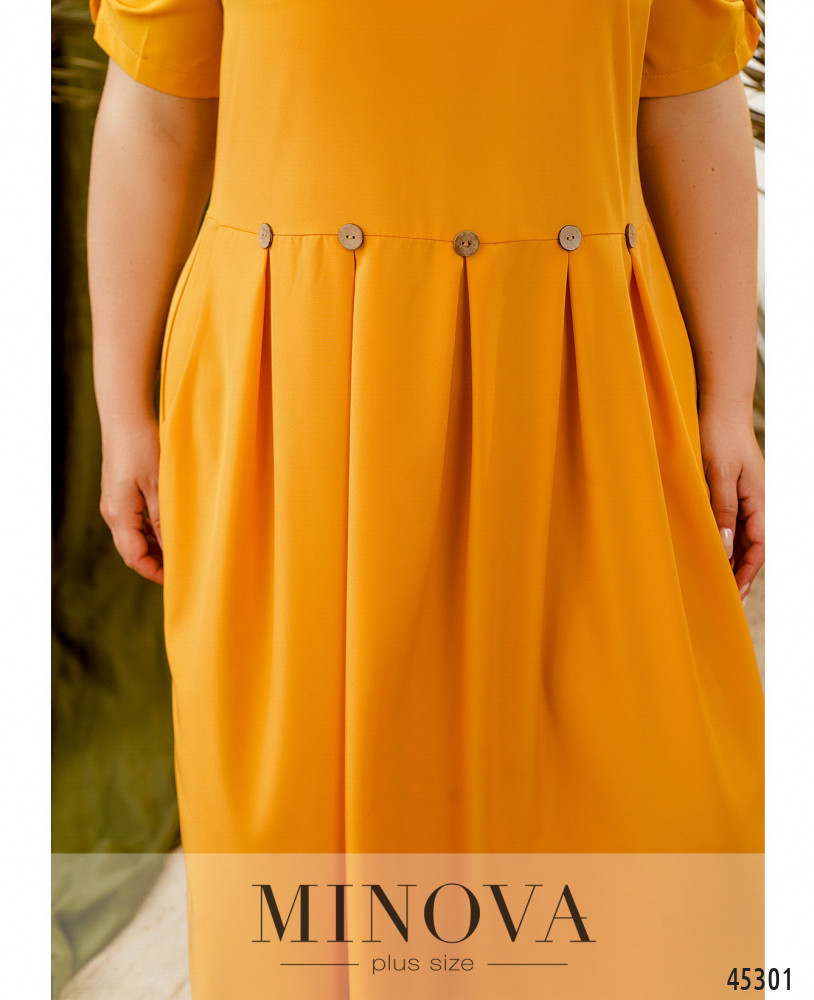 Легкое лаконичное платье миди с короткими рукавами и змейкой на спинке выполнено в актуальных однотонных оттенках. Изюминкой этой модели стали удобные карманы в боковых швах и широкие складки на юбке, декорированные пуговицами по линии талии.