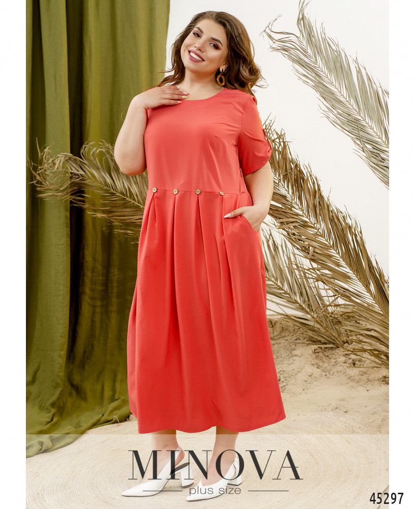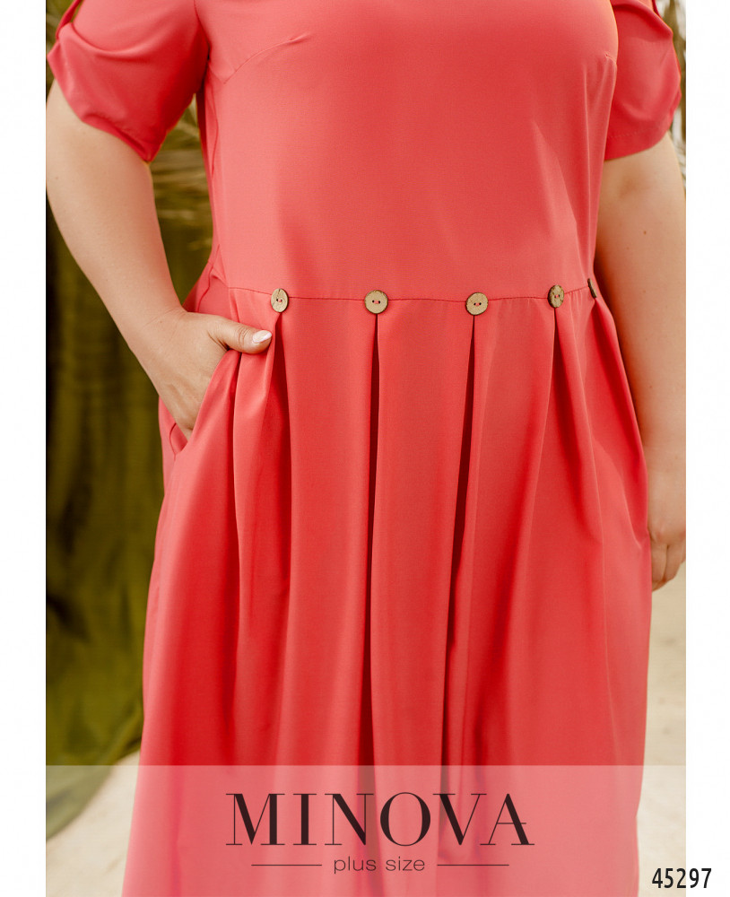 Легкое лаконичное платье миди с короткими рукавами и змейкой на спинке выполнено в актуальных однотонных оттенках. Изюминкой этой модели стали удобные карманы в боковых швах и широкие складки на юбке, декорированные пуговицами по линии талии.