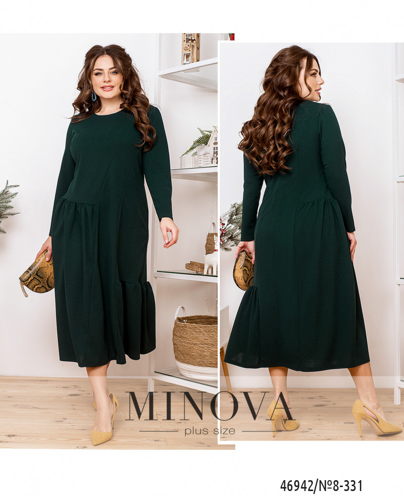 Оригинальное платье с оборками на подоле, расположенными на разных уровнях: слева выше, справа ниже, поможет создать неповторимый образ и подчеркнет ваш индивидуальный стиль. Модель с полукруглым вырезом горловины и длинными рукавами застегивается на змейку, вшитую по спинке.