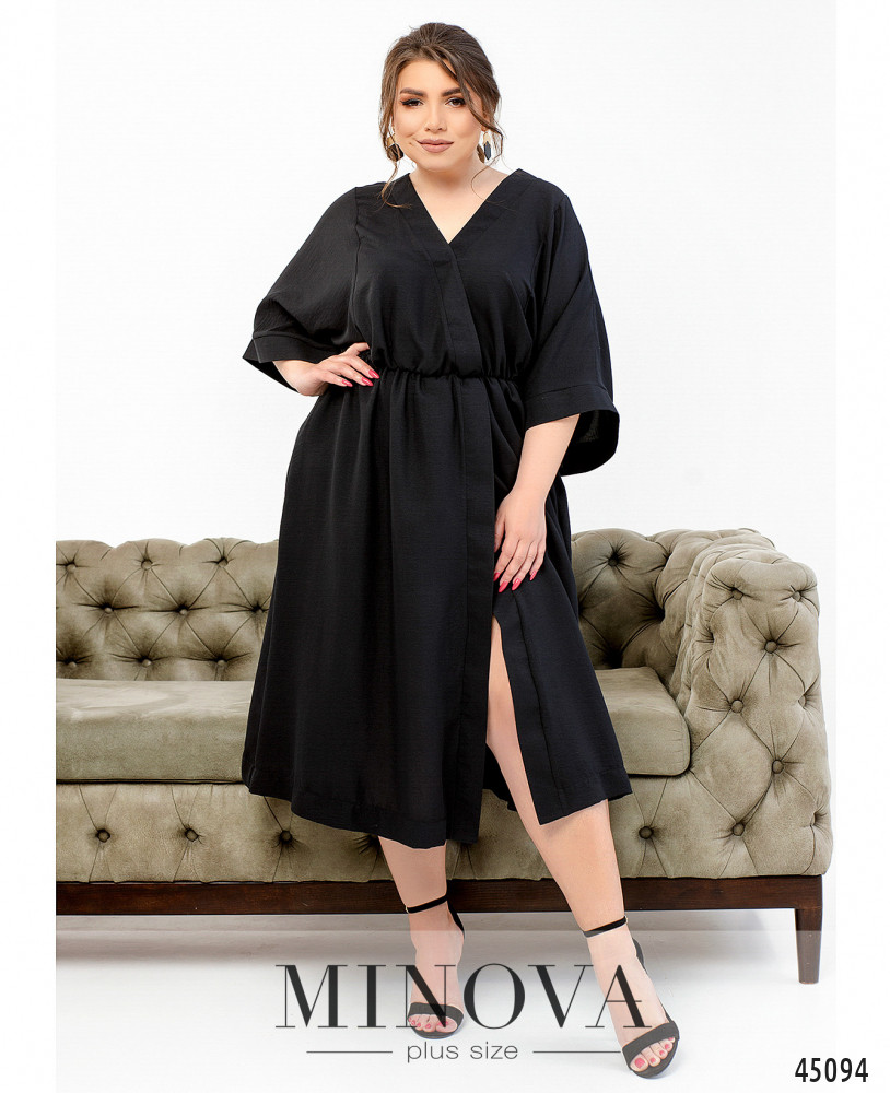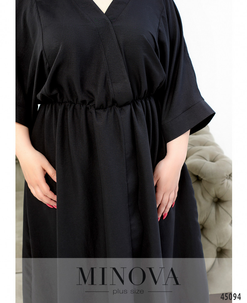 Стильное и минималистичное платье на запАх с широкими рукавами-кимоно без застёжек и карманов. Талия на резинке создаст женственный силуэт.