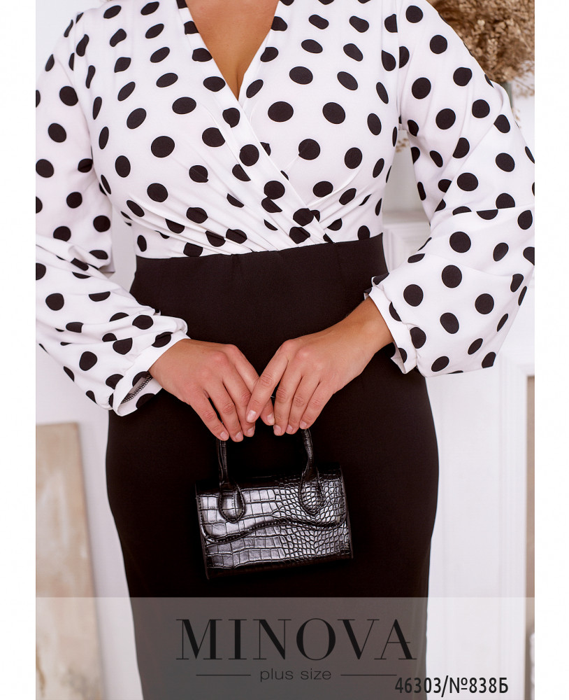 Изящное платье с лифом, подшитым на запах, может в полной мере подчеркнуть достоинства фигуры и помочь создать женственный и нежный лук. Модель дополнена длинными рукавами с тонкими манжетами и шлицей внизу сзади. Платье застегивается на змейку, вшитую по спинке.