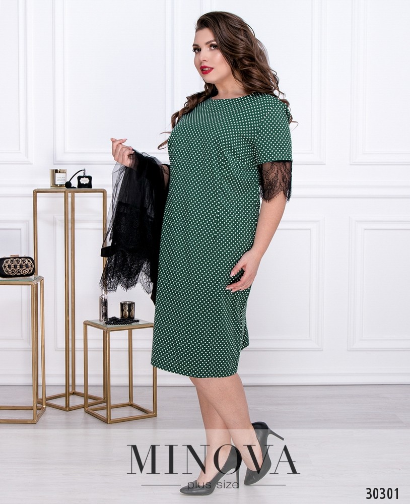 58 р-р: длина платья 104см, длина рукава 32см, обхват рукава 41см, ОГ – 116см, ОТ – 108см, ОБ – 126см.