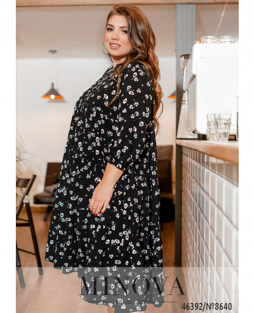 Нежное женственное платье А-силуэта с несколькими рядами воздушных оборок – универсальное решение для любой модницы. В нем вполне можно появиться как в офисе, так и на корпоративе или празднике. Застёжек и карманов нет, вырез горловины полукруглый, в рукава на месте манжет вшиты тонкие резинки.