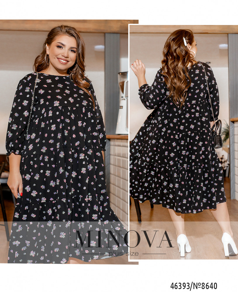 Нежное женственное платье А-силуэта с несколькими рядами воздушных оборок – универсальное решение для любой модницы. В нем вполне можно появиться как в офисе, так и на корпоративе или празднике. Застёжек и карманов нет, вырез горловины полукруглый, в рукава на месте манжет вшиты тонкие резинки.