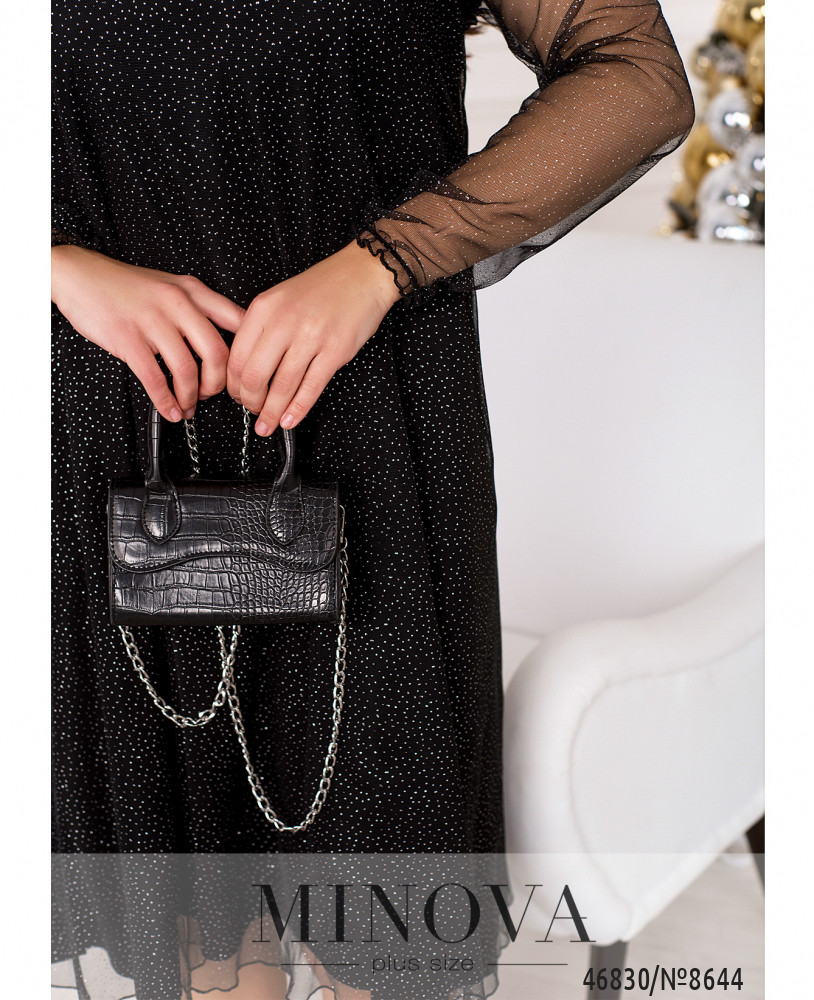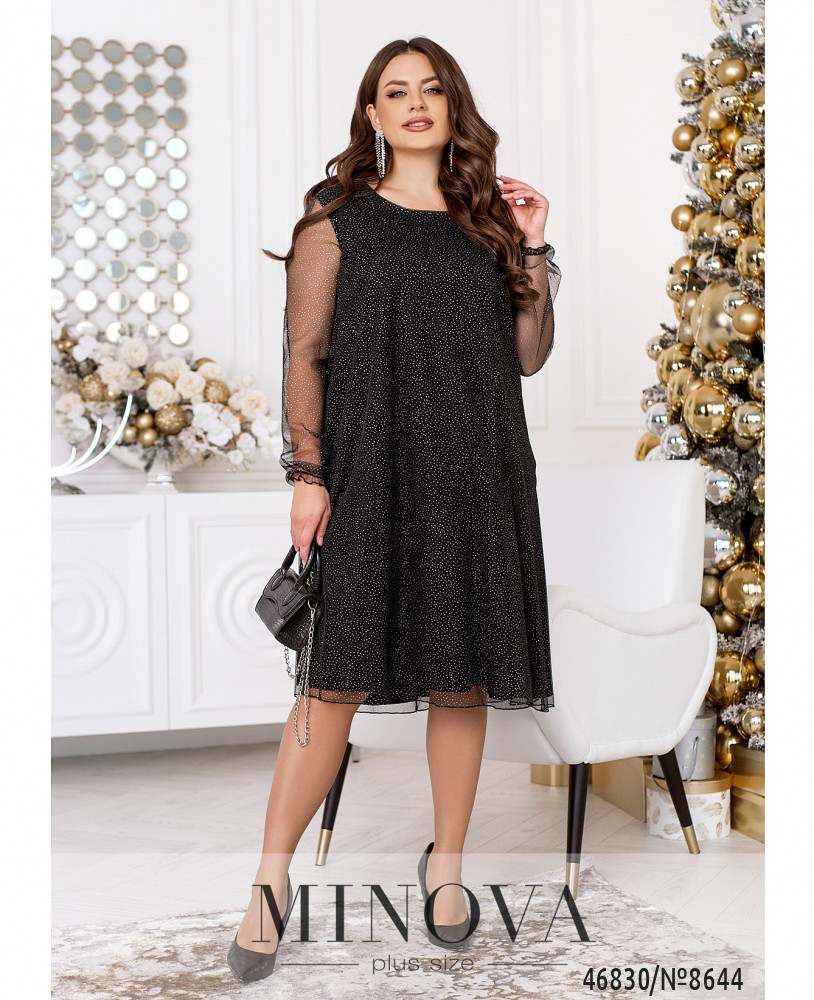 Воздушное двуслойное платье, выполненное из мерцающей ткани, сделает вас королевой любой вечеринки. Модель без застежек дополнена длинными полупрозрачными рукавами с резинками вместо манжет.