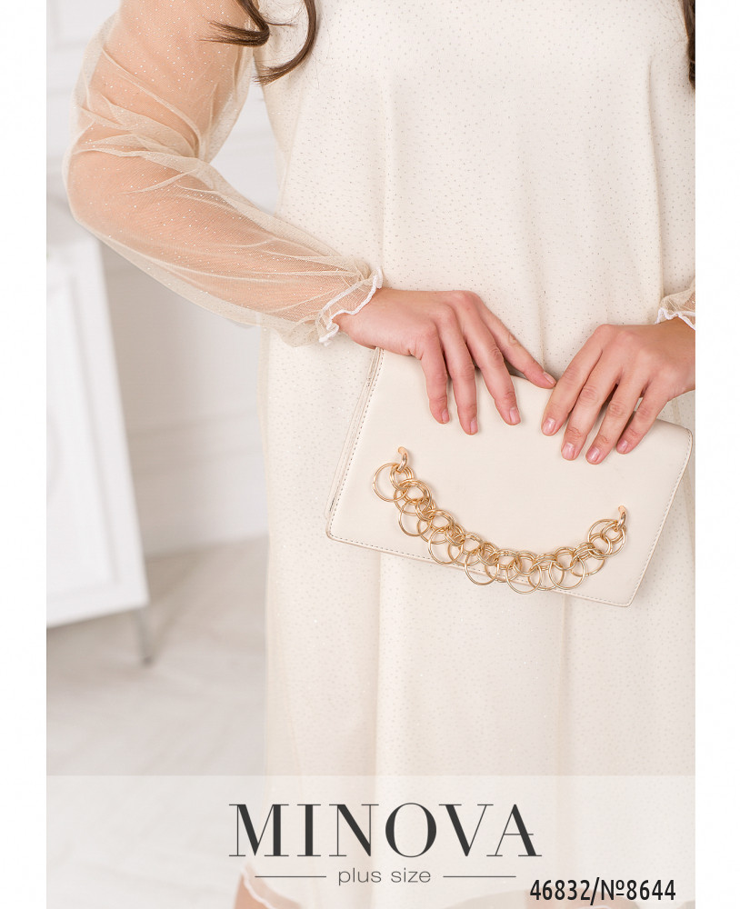 Воздушное двуслойное платье, выполненное из мерцающей ткани, сделает вас королевой любой вечеринки. Модель без застежек дополнена длинными полупрозрачными рукавами с резинками вместо манжет.