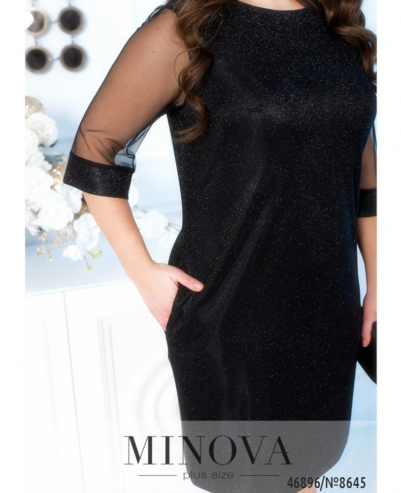 Сверкающее платье поможет вам создать яркий незабываемый образ для праздничной вечеринки. Модель прямого кроя дополнена полупрозрачными рукавами с мерцающими манжетами. Платье застегивается на змейку, вшитую по спинке.