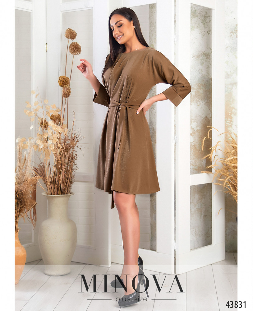 Элегантное платье плюс сайз без застёжек и карманов, подол подшит к лифу и расклешён, в комплекте пояс. Рукава с мягкими манжетами. На спинке продольные вытачки, вырез горловины "лодочка". Пояс/аксессуар входит в комплект.
