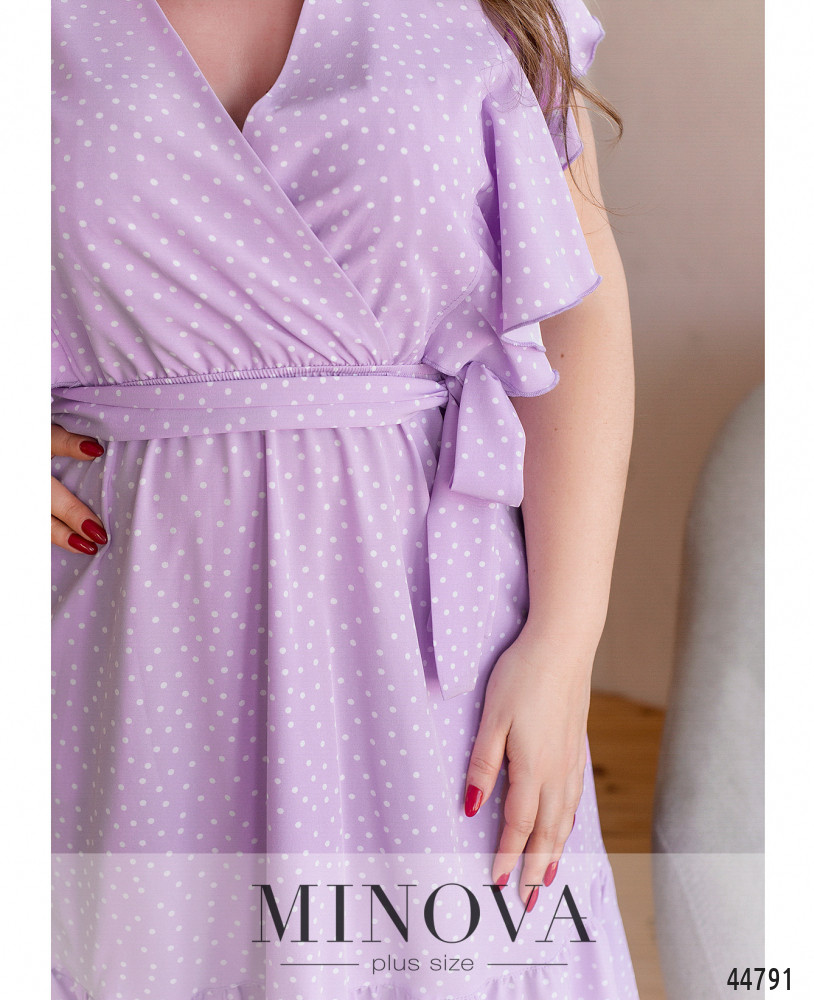 Стильное и элегантное платье батал, лиф подшит на запАх к подолу, в пояс вшита резинка, подол украшен оборками. Рукава - ниспадающие мягкие оборки-крылышки. По бокам - карманы в шве. В комплекте пояс в тон. Застёжек нет. Пояс/аксессуар входит в комплект.