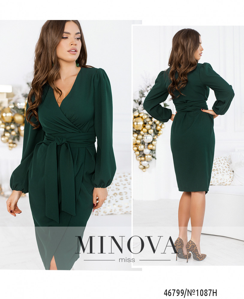 Стильное однотонное платье с длинными объемными рукавами на резинках может в полной мере подчеркнуть достоинства фигуры и помочь создать женственный и нежный образ. Модель завязывается на запАх, что позволяет регулировать ее посадку на талии. Дополните образ широким текстильным поясом, который входит в комплект.