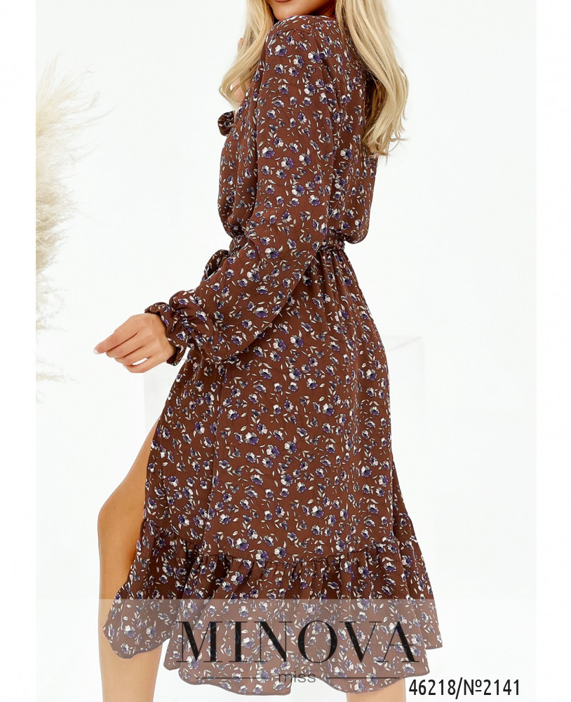 Нежное и романтичное платье с V-образным вырезом горловины и соблазнительным разрезом на подоле позволит выглядеть роскошно даже в повседневных образах. Модель дополнена длинными рукавами с оборками на резинках вместо манжет и застежкой на пуговицах от горловины до талии, расположенной спереди. По линии талии также вшита резинка.