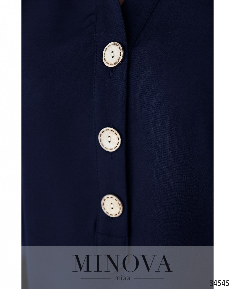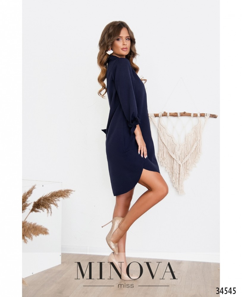 Лёгкое, простое, идеальное для базового гардероба платье-рубашка А-силуэта из нового каталога женской одежды от Minova. Платье с отложным воротничком, рядом круглых пуговиц от воротника до груди, рукава длиной ¾. На рукавах через шлейки пропущен поясок, как на плаще-тренчкоте, поясок можно завязать бантом. Подол асимметричный, по спинке чуть длиннее, по бокам подшито на небольшой запАх. На груди вытачки, карманов нет. Прекрасный выбор для повседневного гардероба, можете сочетать эту модель с любой удобной обувью.