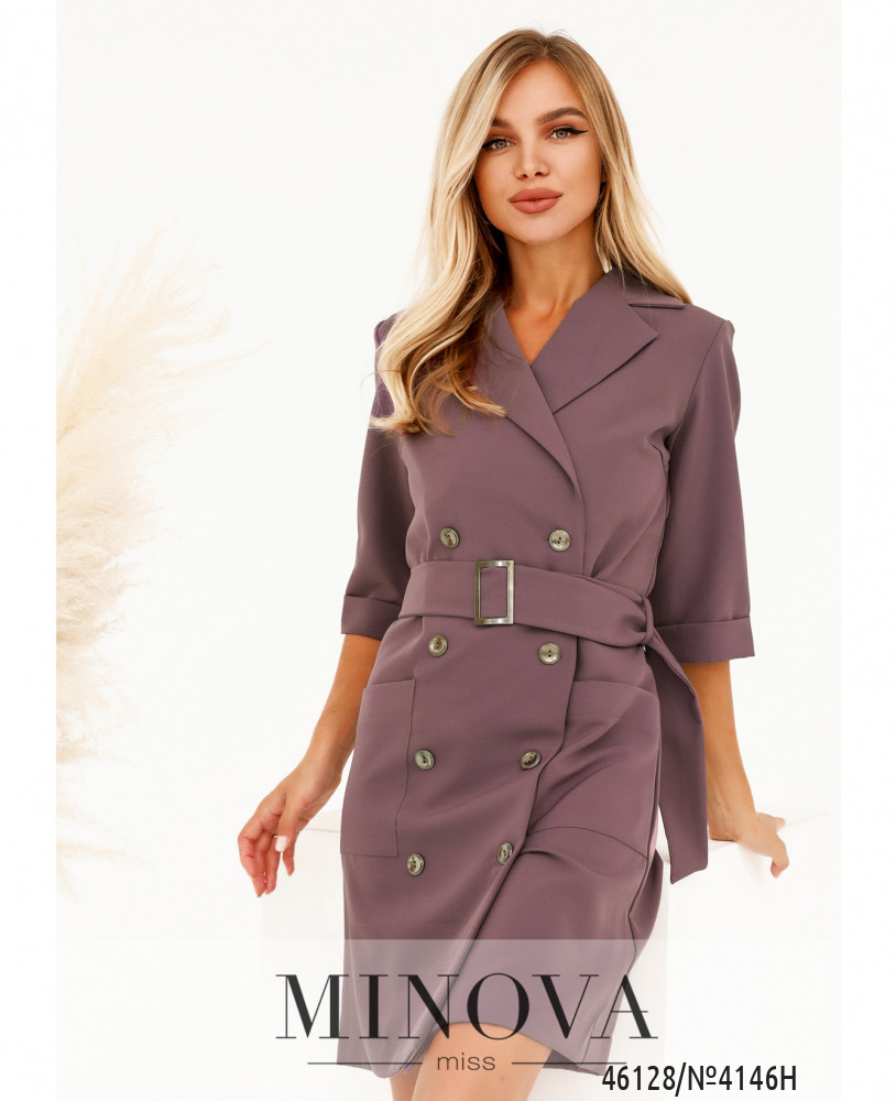 Элегантное платье, застегивающееся на ряд пуговиц спереди, подчеркивают хрупкость и утонченность женской фигуры. Модель дополнена воротником с лацканами, накладными карманами и текстильным поясом в тон.
