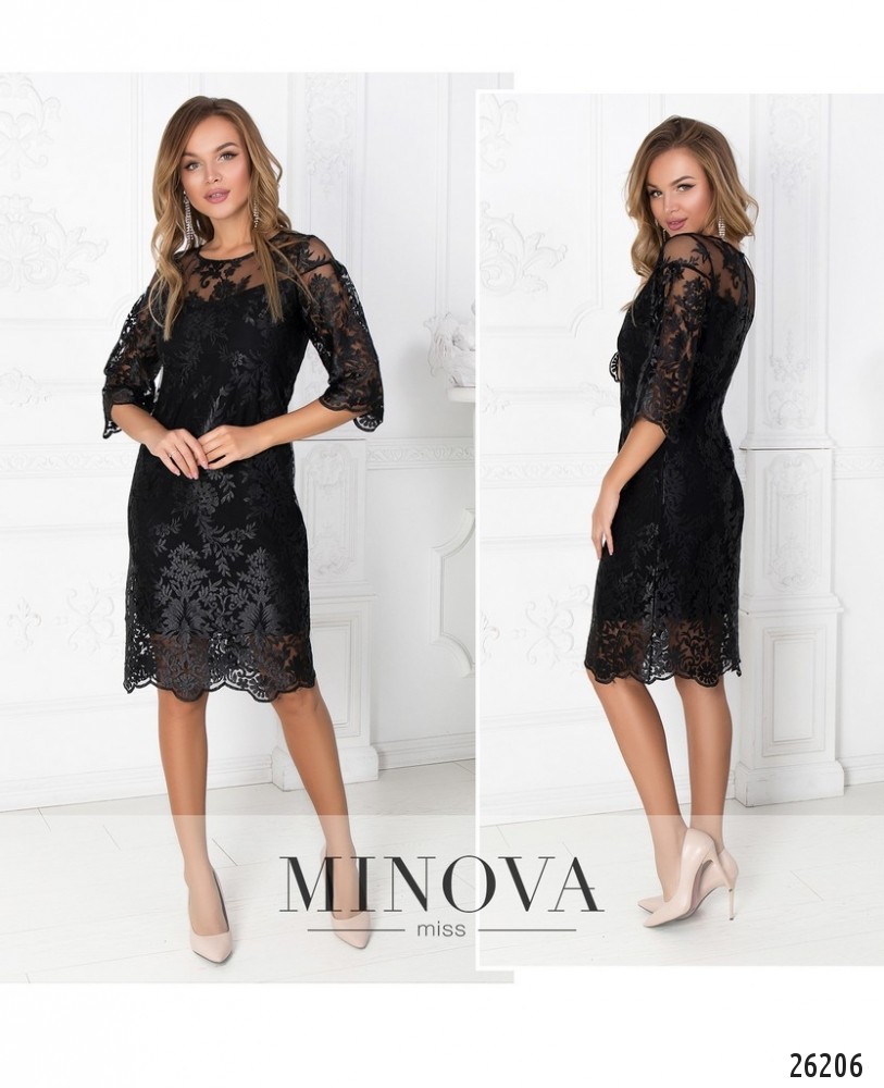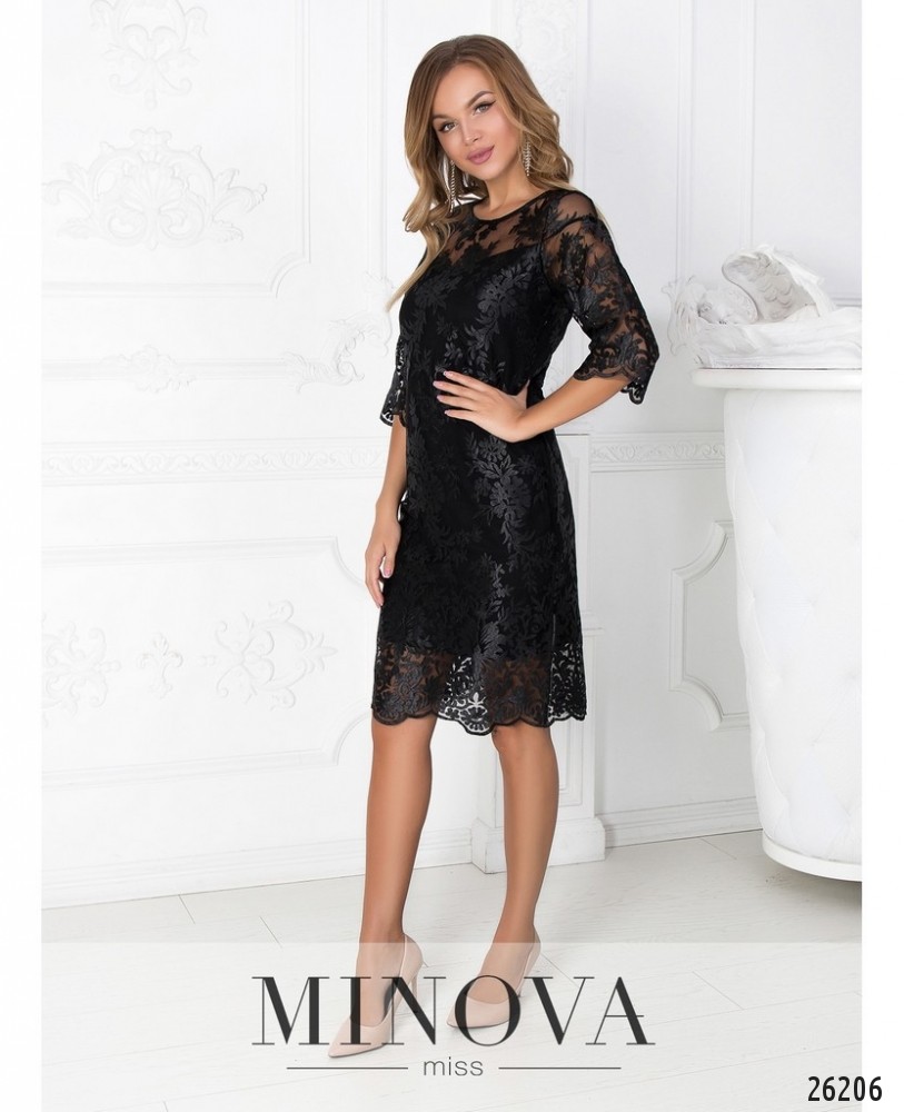 Романтичное кружевное платье с объемными рукавами и фигурным подолом – хороший выбор для коктейля. Платье на подкладке застегивается с помощью скрытой молнии на спине.