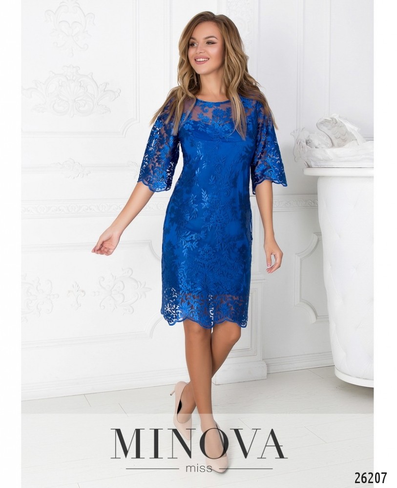 Романтичное кружевное платье с объемными рукавами и фигурным подолом – хороший выбор для коктейля. Платье на подкладке застегивается с помощью скрытой молнии на спине.