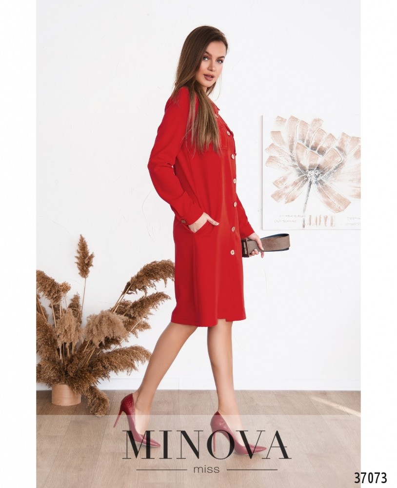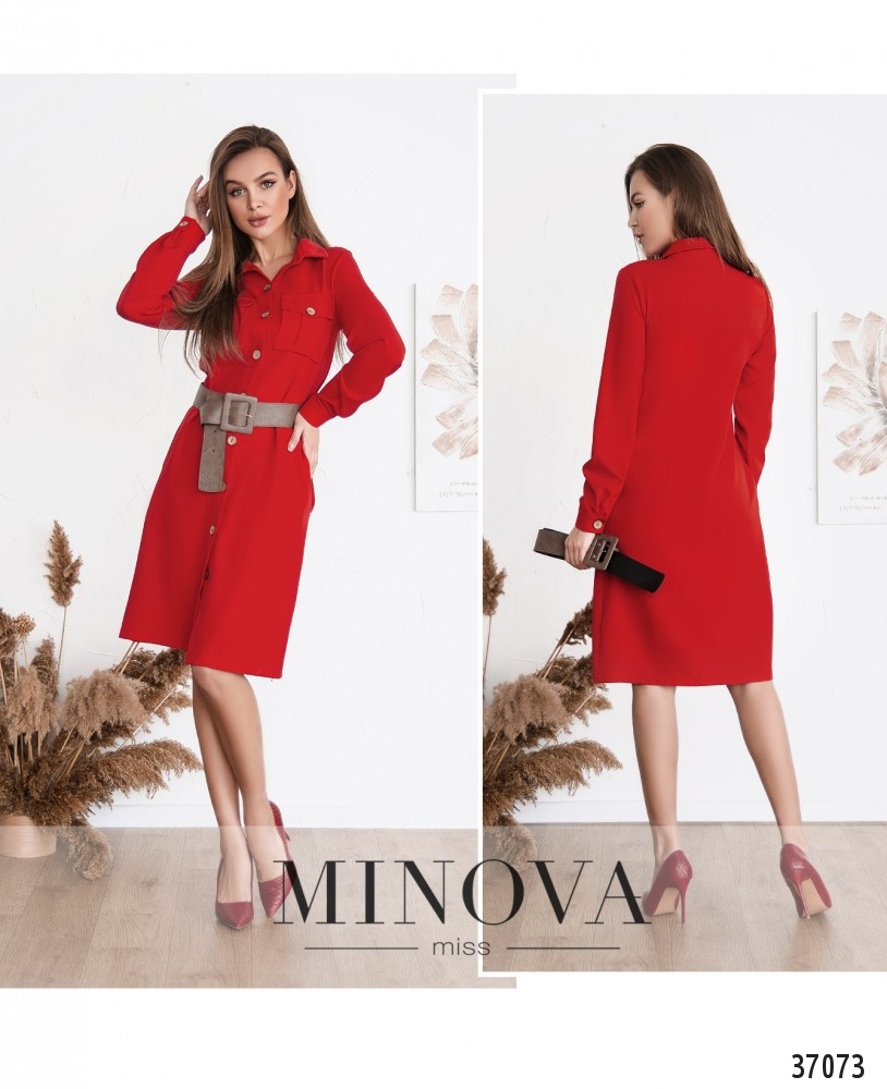Платье-рубашка всегда смотрится необычно и привлекает внимание. Особенно если модель выполнена в ярком цвете, а пастельные оттенки дают возможность вписать её в базовый гардероб. Minova представляет в новом каталоге модель платья приталенного фасона, а подчеркнёт её приталенность плотный пояс с широкой пряжкой, который идёт в комплекте. Платье из мягкой ткани, с рукавами полной длины. На рукавах – небольшие манжеты с одной пуговицей. По бокам – врезные карманы, на груди – накладные функциональные карманы с листочкой и пуговицей, а также небольшие диагональные вытачки, доходящие до карманов. Воротничок отложной, ряд рабочих пуговиц расположен от воротничка до подола. Платье будет хорошо смотреться на любой фигуре и сочетаться с городской или спортивной обувью. Пояс/аксессуар входит в комплект.