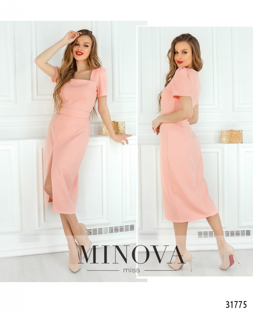 Стильное платье-футляр со съемным поясом. Платье с коротким рукавом. Юбка-миди с фиксированным запахом.