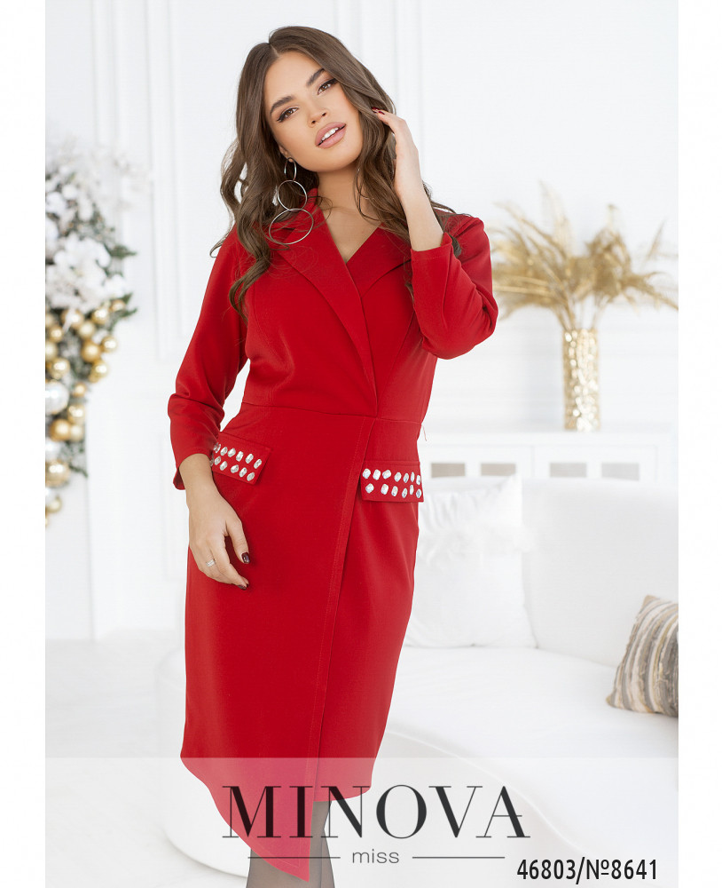 В женственном платье-миди приталенного силуэта, подшитом на запах, вы будете очаровательны как в офисе, так и на вечеринке или празднике. Эта модель дополнена воротником с лацканами, рукавами 7/8 без манжет и накладными клапанами без карманов, дополненными декоративными украшениями. Изюминку добавляет ассиметричный подол, удлиненный спереди. Платье застегивается на змейку, вшитую по спинке.