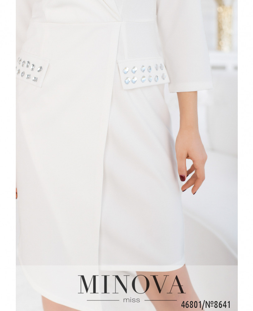 В женственном платье-миди приталенного силуэта, подшитом на запах, вы будете очаровательны как в офисе, так и на вечеринке или празднике. Эта модель дополнена воротником с лацканами, рукавами 7/8 без манжет и накладными клапанами без карманов, дополненными декоративными украшениями. Изюминку добавляет ассиметричный подол, удлиненный спереди. Платье застегивается на змейку, вшитую по спинке.