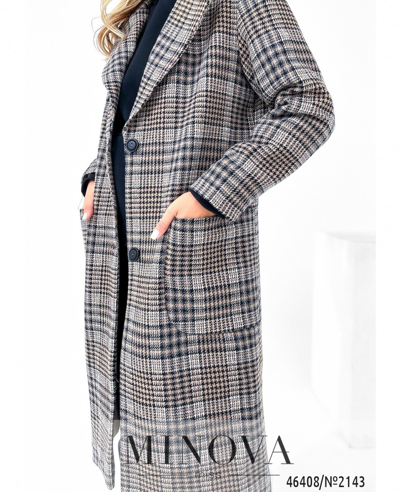 Пальто №2143-бежевая-клетка