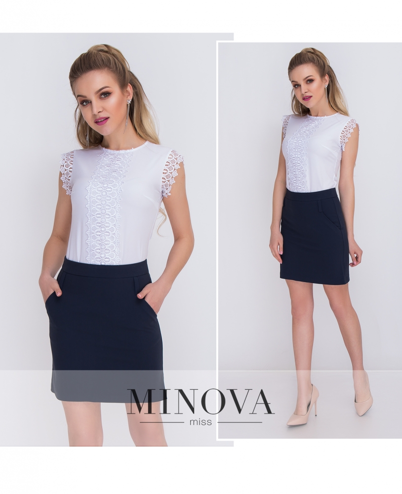 Юбка-мини на средней посадке с карманами. Лицевая сторона дополнена шлевками. На спинке юбка застегивается на молнию.