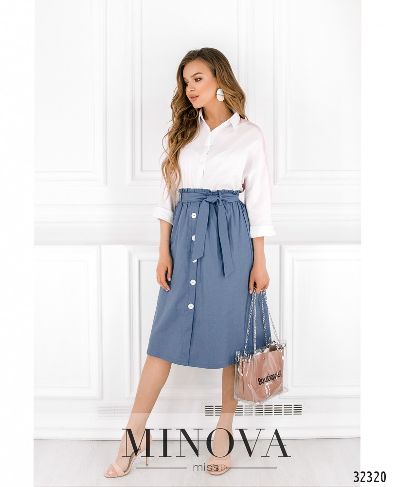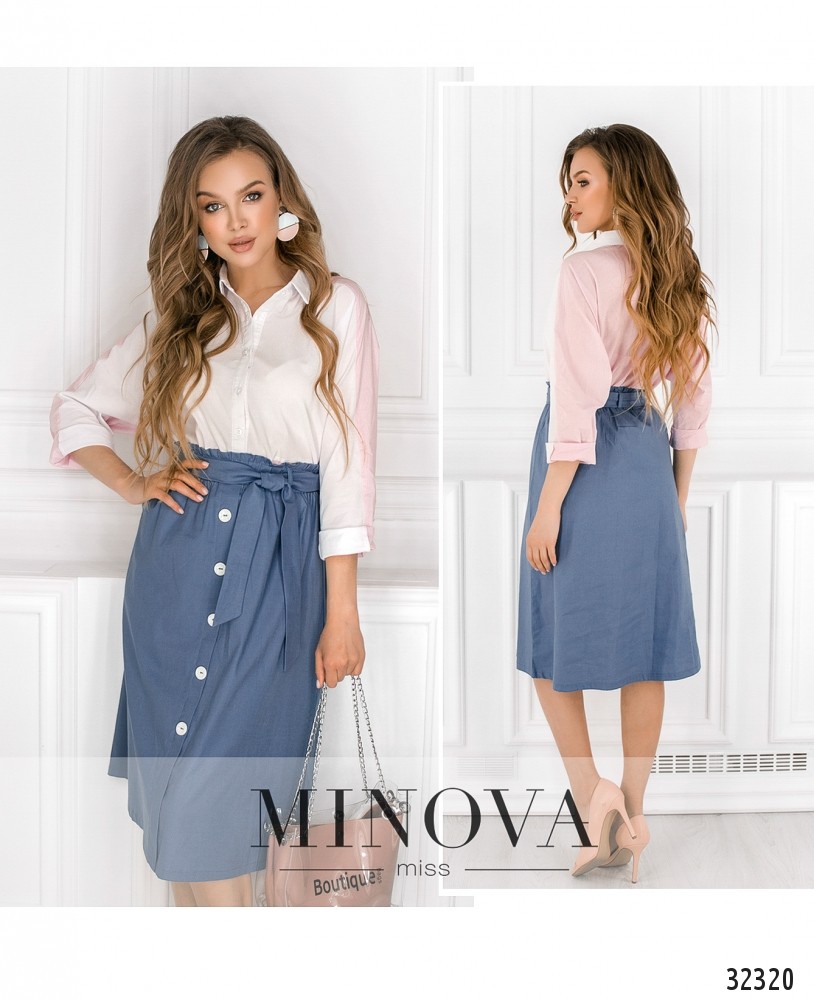 Лёгкая юбка Minova от из плотной ткани, на резинке – пояс, спереди – пуговки, так что её удобно и надевать, и гладить после стирки. Благодаря резинке юбка выглядит слегка плиссированной, не стесняет движений. Карманов нет, ткань на бёдрах ложится аккуратно. Купить такую юбку – значит оставить себе возможность выбора: надеть туфли на каблуке или любимые кроссовки. В любом случае образ будет стильным и актуальным!