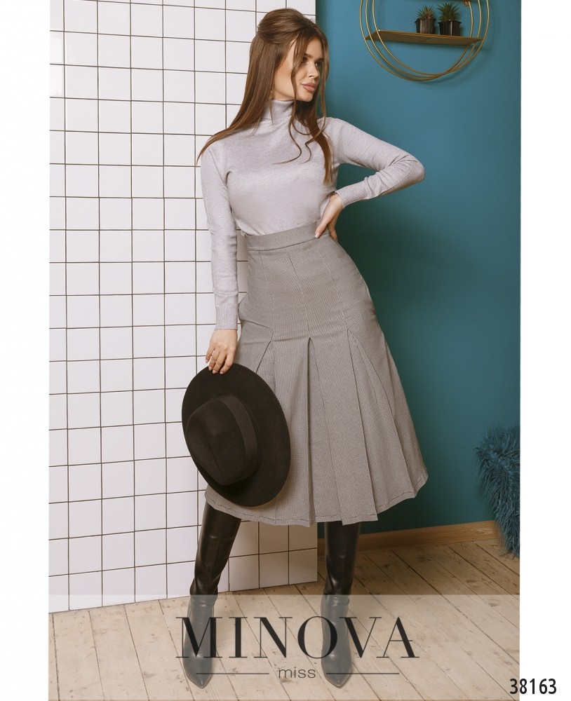 Очаровательная юбка с плиссировкой и высокой талией, с врезными карманами по бокам и вшитой слева потайной молнией.