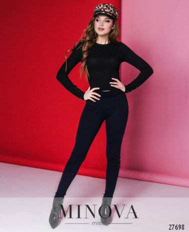 42 р-р: довжина брюк по внутрішньому шву 80см, довжина брюк по зовнішньому шву з урахуванням пояса 104см, ОТ – 65/75см, ОБ – 95см.