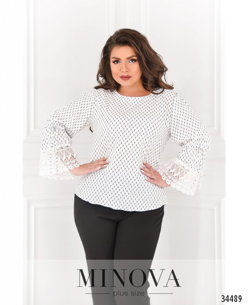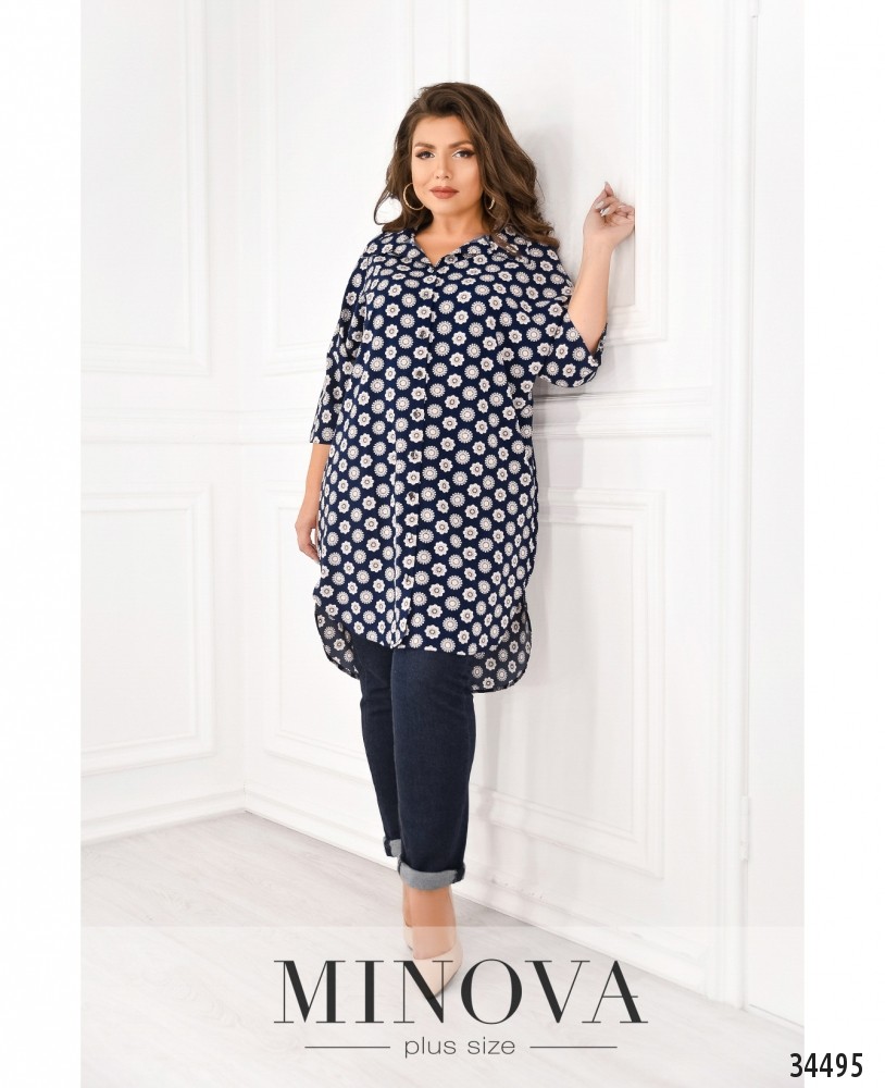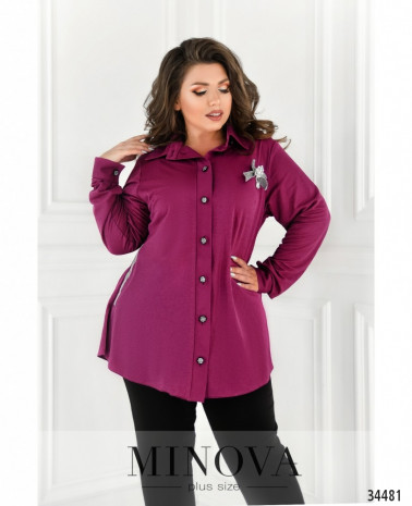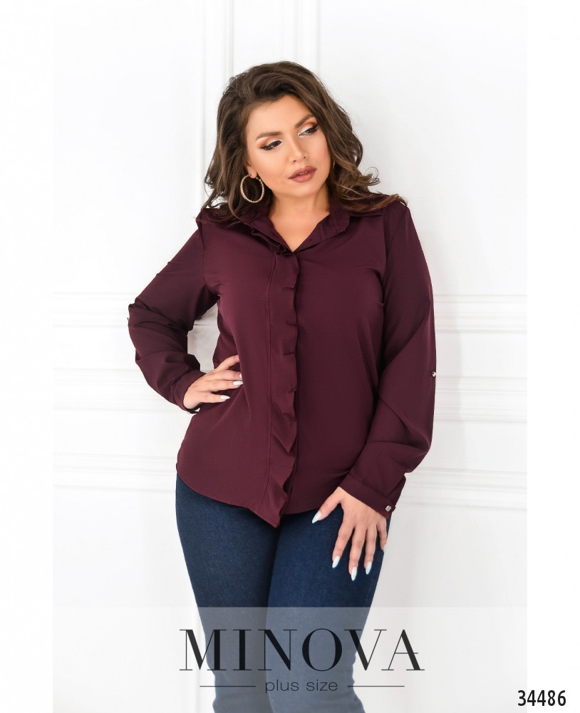 Дуже легка сорочка класичного фасону: відкладний комірець, повний ряд блискучих гудзиків на ніжці, рукава повної довжини з манжетами, прикрашеними одним гудзиком. На грудях – невеликі діагональні виточки. Є дві поперечні стрічки, розташовані на спині на рівні кокетки.