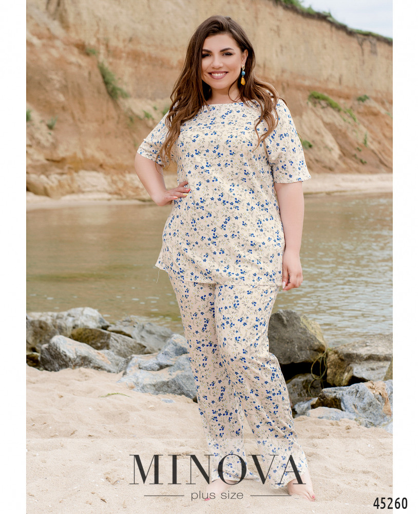 60-62 р-р: довжина брюк по внутрішньому шву 76см, довжина брюк по зовнішньому шву з урахуванням пояса 108см, ОТ - 98/130см, OC -132см.