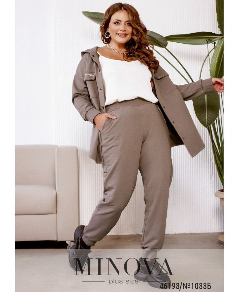 60-62 р-р: довжина брюк по внутрішньому шву 78см, довжина брюк по зовнішньому шву з урахуванням поясу 104см, ОТ - 92-124см, ОС -124см.