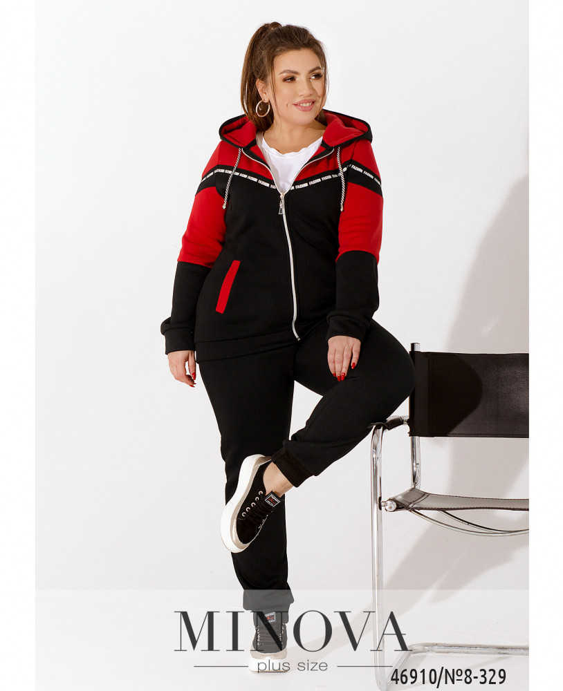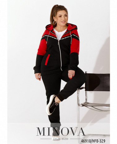Яскравий спортивний костюм, виконаний з м'якої тканини, дозволить створювати стильні і різноманітні образи у вуличному стилі. У комплект входять лаконічні однотонні штани на резинці з кишенями в бічних швах і манжетами, а також виразна кофта, з яскравими вставками, доповнена капюшоном, кишенями з боків і змійкою по центру.