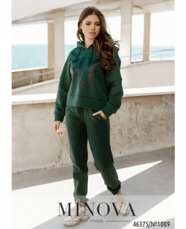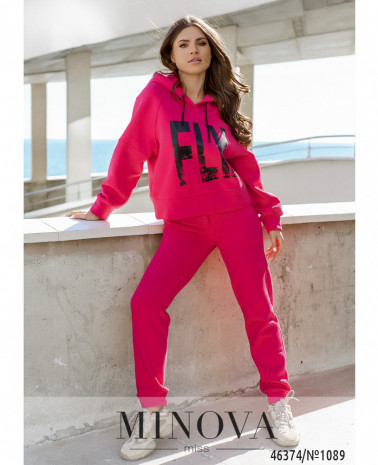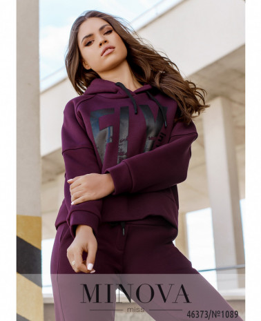 Яскравий спортивний костюм - це одяг, перевірена часом. Такий образ - універсальне рішення для будь-якої модниці в холодну пору року. У комплект входять спортивні штани-джоггери на резинці з кишенями і манжетами, а також лаконічне худі з капюшоном, прикрашене декоративним принтом.