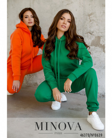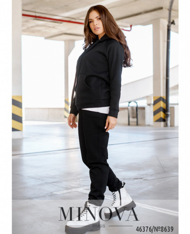 Завдяки цьому лаконічному монохромному спортивному костюму можна створювати дійсно стильні і яскраві образи в прохолодну пору року. У комплект входить худі з капюшоном і кишенею-кенгуру, а також мінімалістичні штани-джогери з кишенями в бічних швах і гумками, вшитими по лінії талії і по низу штанин. Пояс НЕ входить в комплект.