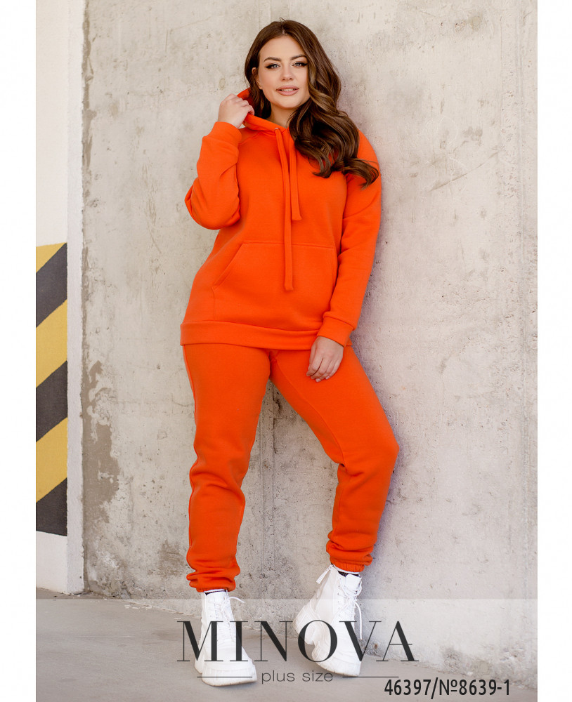 Завдяки цьому лаконічному монохромному спортивному костюму можна створювати дійсно стильні і яскраві образи в прохолодну пору року. У комплект входить худі з капюшоном і кишенею-кенгуру, а також мінімалістичні штани-джогери з кишенями в бічних швах і гумками, вшитими по лінії талії і по низу штанин. Пояс НЕ входить в комплект.