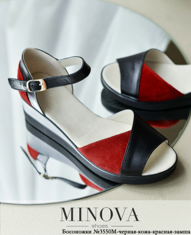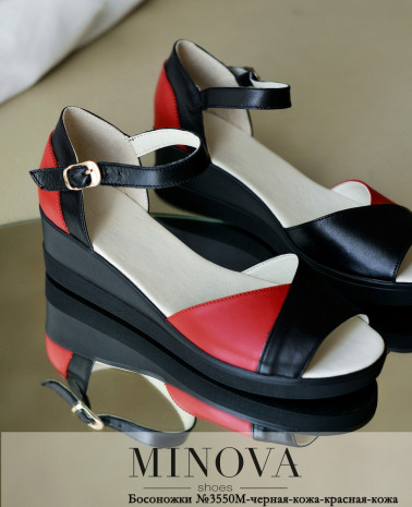 • Босоножки №3550М-черная-кожа-красная-кожа